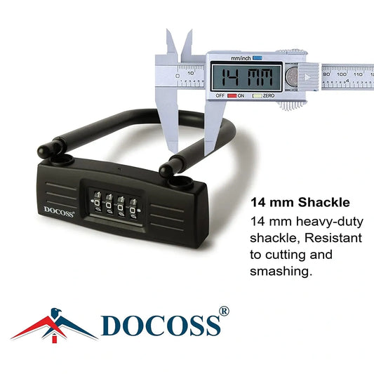 DOCOSS Metal U Lock for Cycle Bike , Cycle Lock / Bicycle Lock , Heavy Duty Helmet Lock Combination Bike Lock / Strong Password Lock for Bike (Black)