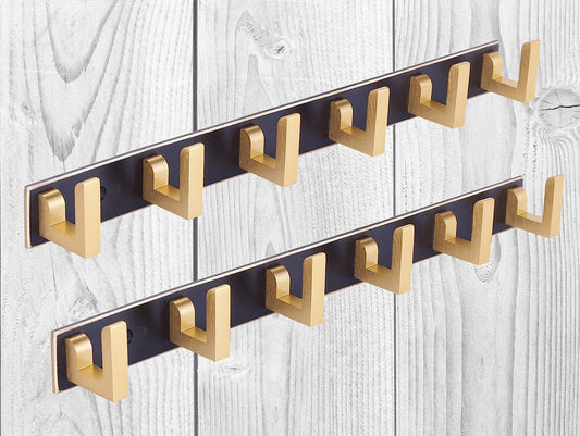 DOCOSS-Exclusive Extra Long 40 cm Gold Black 6 Pin Metal cloth hangers for wall Door Cloth Hook Bathroom Wall Hooks Rail for Hanging Clothes,Towel Bathroom Accessories