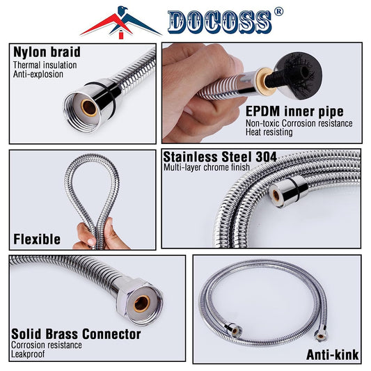 DOCOSS 304 Grade Stainless Steel Flexible Tube Shower Hose Pipe/ Hand Shower Tube / Health Faucet Pipe Jet Spray Tube (1.5 Meter, Chrome)