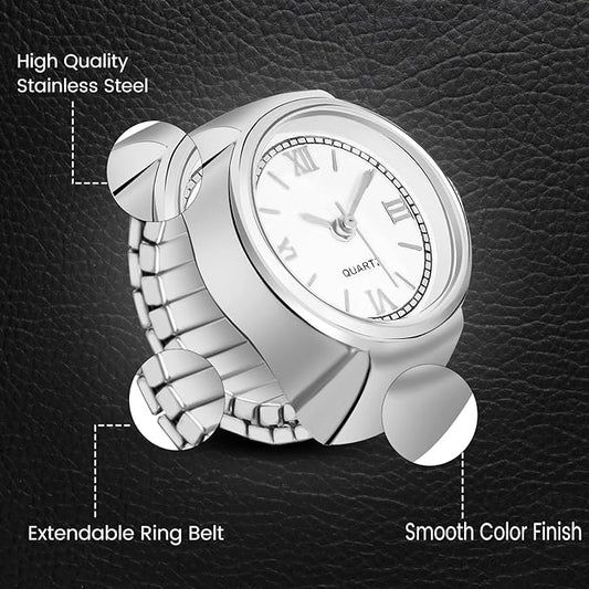 DOCOSS -Jewellery Stylish Finger Ring Watch,Stretchy Elastic Band,Quartz Ring Watches for Girls,Women,Men,Boys ( Silver )