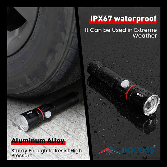 DOCOSS 2 in 1 Torch Light High Power Long Distance Rechargeable Torch Lights Wth Emergency Lights ,Water Resistant camping light(Black-Small)
