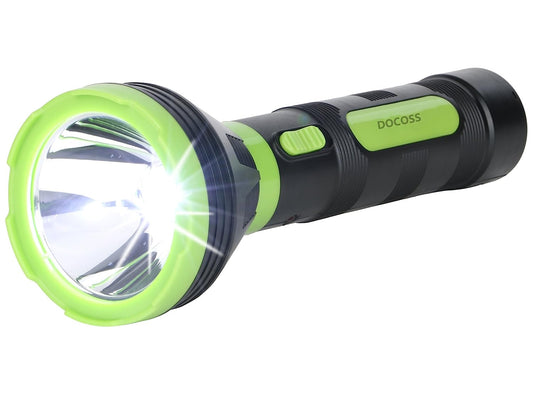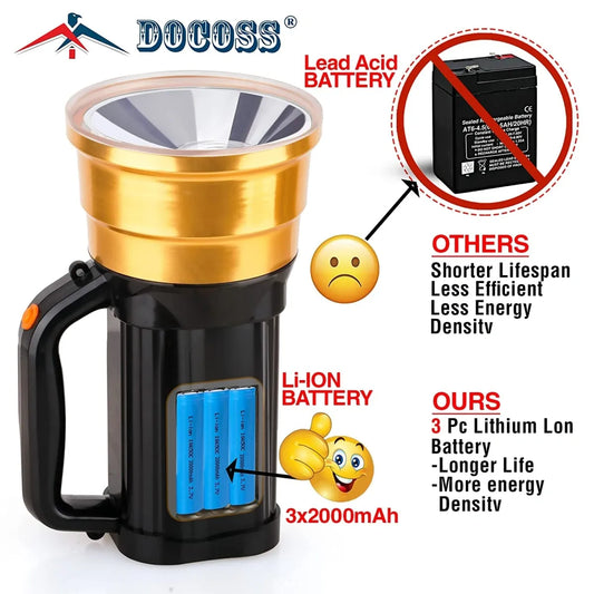 DOCOSS Q61- 50 W Torch Light High Power Long Distance 1 km,1000 meter Long Range , 6000 mAh / 7-14 Hours High Battery Back up Water Resistance Rechargeable Led Torch Ultra Bright Kisan Search Light(Black)
