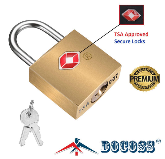 DOCOSS-Pack of 2-Small Brass Lock TSA Approved With Keys ,International Locks For luggage Bag Travelling Locks Padlock(Gold)