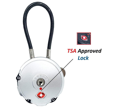DOCOSS-Pack of 1- 529-Metal TSA Approved Lock Strong Cable International Password Locks For luggage Bag Travel Locks(Silver)