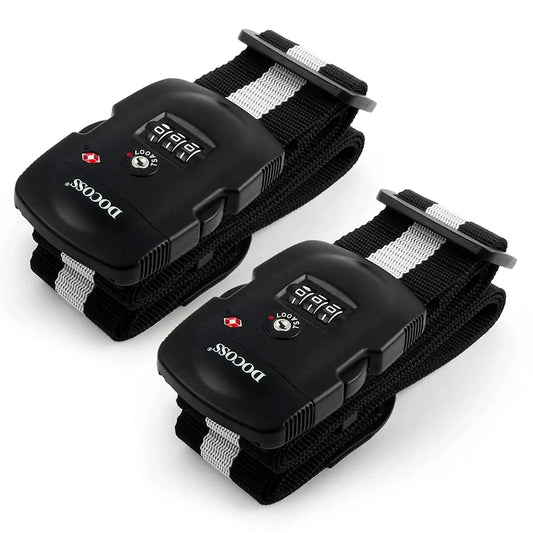 DOCOSS 016 TSA Locks Strap Number Lock for Luggage Belt Adjustable Luggage Strap Locks / Combination Password Luggage Locks for Travel (BLACK)